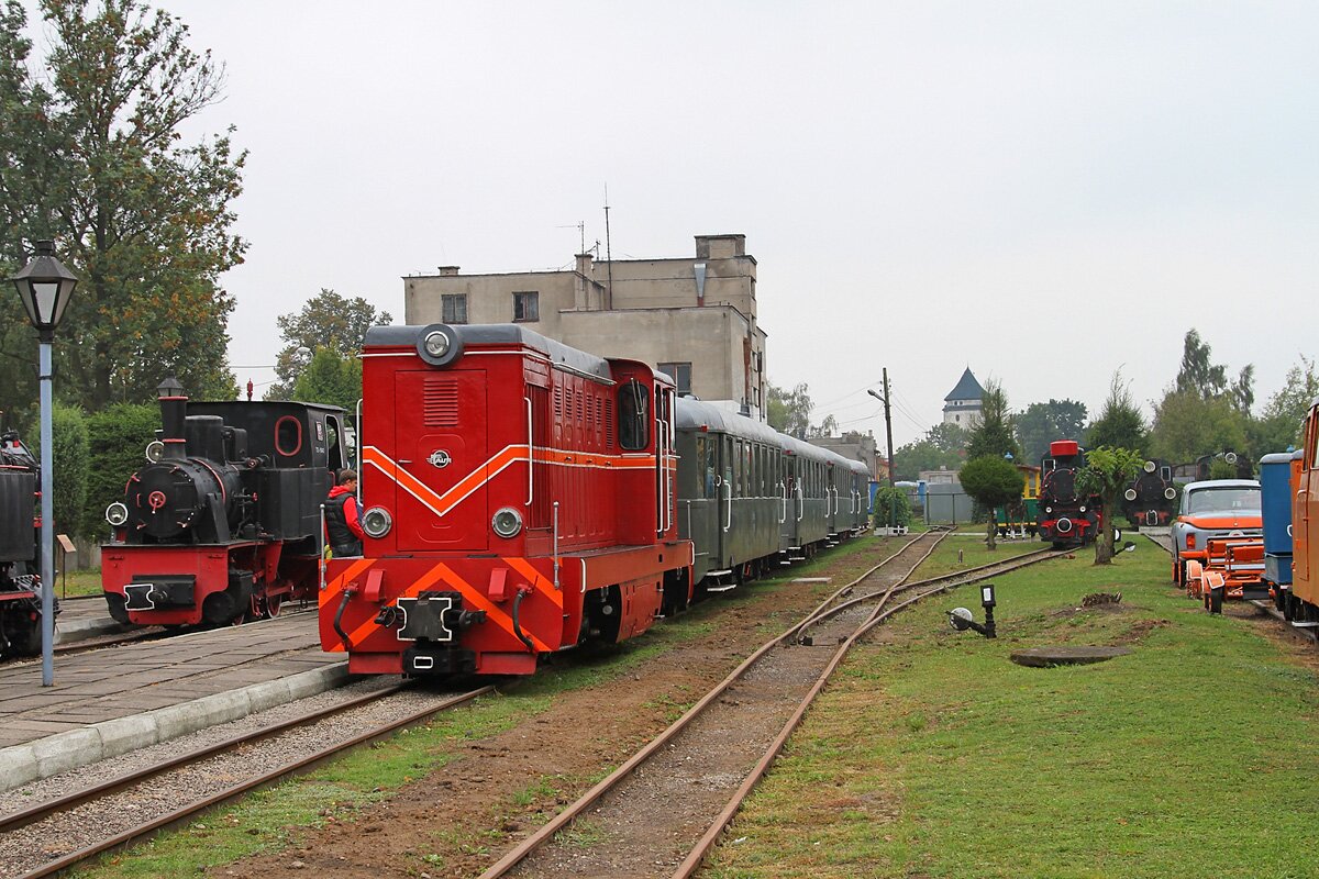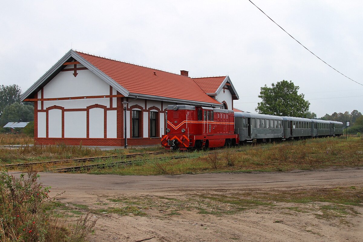 12.09.2015 Pociąg Sochaczewskiej Kolei Wąskotorowej stoi na stacji Sochaczew Wąskotorowy 12.09.2015 Lokomotywa Lxd2-342 manewruje na terenie stacji Sochaczew Wąskotorowy 12.09.2015 Pociąg Sochaczewskiej Kolei Wąskotorowej przejeżdża przez most na rzece Łasica 12.09.2015 Pociąg Sochaczewskiej Kolei Wąskotorowej 12.09.2015 Pociąg Sochaczewskiej Kolei Wąskotorowej stoi na stacji Tułowice 12.09.2015 Osada Puszczańska w Tułowicach